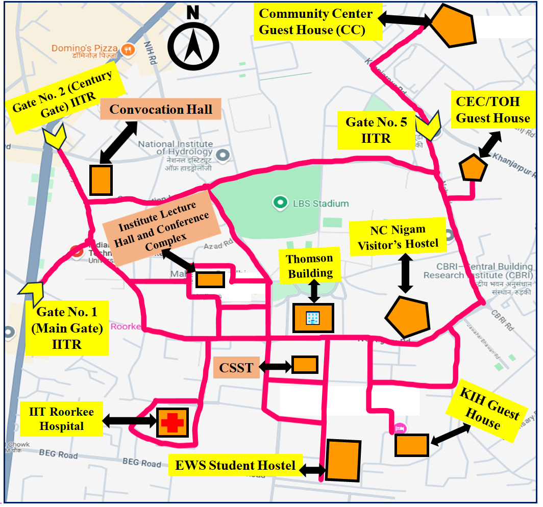 - Accommodation: If your accommodation is booked inside IIT Roorkee campus, please reach to the respective guest houses or student hostel locations as provided below: